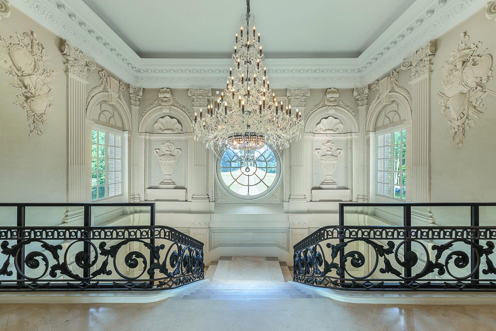 Projet de mise en lumière réalisé pour le Château de Belbeuf, propriété de la société Paul Marius. Important projet de 18 lustres sur mesure en cristal dessinés